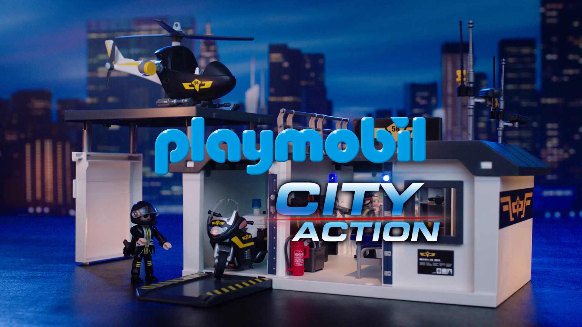 Das Spezialset SEK-Zentrale enthält eine komplette Polizeistation mit Hubschrauberlandeplatz und Motorradgarage, Hubschrauber, Motorrad, Quad, verschiedene Waffen und SEK-Zubehör, Waffentresor, Nagelband und vier PLAYMOBIL-Figuren. Jeglicher Figuren und Teile können im praktischen Mitnhemkoffer verstaut und am Tragegriff mühelos mitgenommen werden.