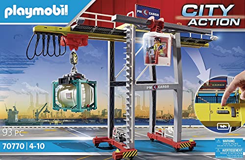 PLAYMOBIL City Action 70770 Elektrischer Portalkran mit Containern, Motor zum Steuern, Ab 4 Jahren