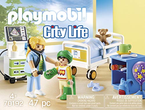 Lieferumfang: 1x PLAYMOBIL City Life Kinderkrankenzimmer, 47-teiliges Spielfiguren-Set mit Anleitung: 1 Bett, 2 Figuren, 44 Zubehörteile, Material: Kunststoff, Individuell aufstellbar, Gewicht: 87 g, 70192