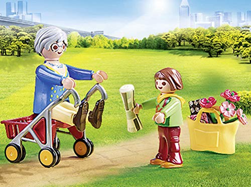 Lieferumfang: 1x PLAYMOBIL City Life Oma mit Rollator, 20-teiliges Spielfiguren-Set mit Anleitung: 1 Rollator, 2 Figuren, 17 Zubehörteile, Material: Kunststoff, Individuell aufstellbar, Gewicht: 34 g, 70194