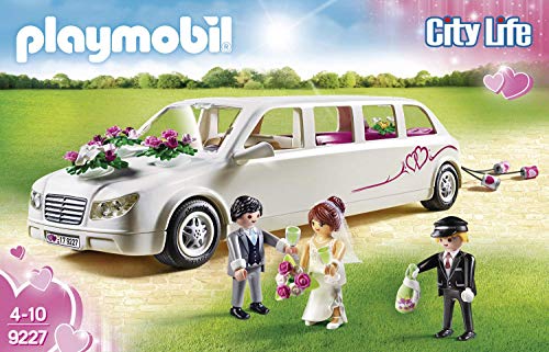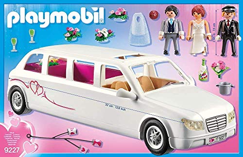Lieferumfang: 1x PLAYMOBIL City Life Hochzeitslimousine, 79-teiliges Spielfiguren-Set mit Anleitung: 1 Limousine, 3 Figuren, 75 Zubehörteile, Material: Kunststoff, LxBxH: 35,5×12,5×9 cm, 9227