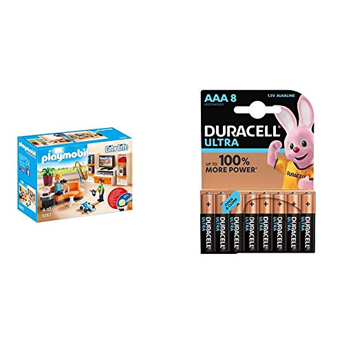 Playmobil City Life 9267 Wohnzimmer, Mit Lichteffekten, Ab 4 Jahren + Duracell Ultra AAA Micro Alkaline Batterien LR03…