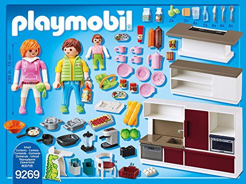 Lieferumfang: 1x PLAYMOBIL City Life Große Familienküche, 102-teiliges Spielfiguren-Set mit Anleitung: 1 Küchenzeile, 3 Figuren, 98 Zubehörteile, Material: Kunststoff, LxBxH: 28.4×18.7×12.2 cm, Art.-Nr. 9269
