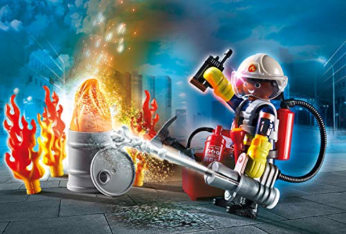 Das PLAYMOBIL-Feuerwehrteam ist Tag und Nacht im Einsatz um zu helfen. Dank seiner tragbaren Löschschaumspritze ist dieser Feuerwehrmann extrem adaptiv und kann sich dem Brandherd sonderlich d’accord nähern. Nach wenigen Minuten gelingt es ihm den Brand mit seinem Löschschaum einzudämmen. Ein perfektes Spielset zugunsten engagierte Nachwuchsfeuerwehrleute.