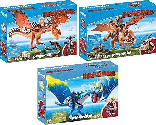 PLAYMOBIL Dragons 3er Set 9247 9459 9460 Astrid und Sturmpfeil + Rotzbakke und Hakenzahn + Fischbein und Fleischklops