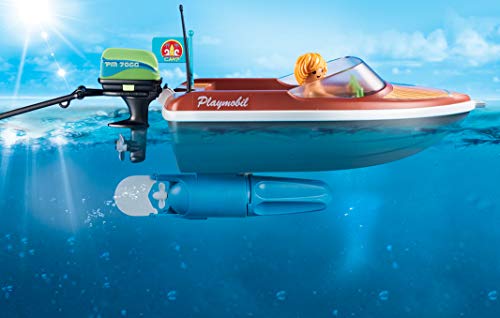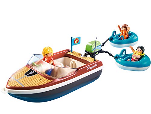 Spielspaß zugunsten kleine Wasserratten: PLAYMOBIL Sportboot mit Fun-Reif werden, Familie in Badeanzug & abnehmbaren Schwimmwesten zugunsten detailgetreues Nachspielen