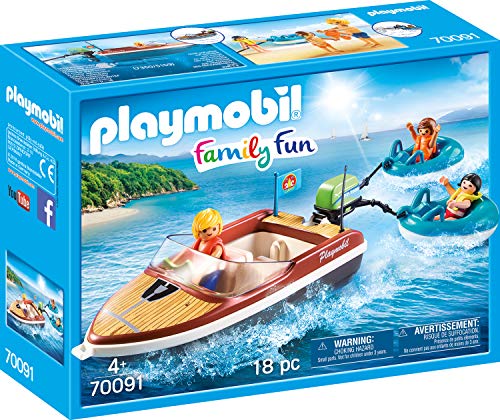 Lieferumfang: 1x PLAYMOBIL Family Fun Sportboot, 18-teiliges Spielfiguren-Set mit Anleitung: 1 Sportboot, 3 Figuren, 14 Zubehörteile, Material: Kunststoff, LxBxH: 44x10x8 cm, 70091