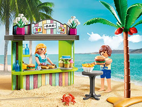 Urlaubsspaß mit der ganzen Familie: PLAYMOBIL Strandkiosk mit einer Verkäuferin, einem Urlauber und weiterem Zubehör für detailgetreues Nachspielen