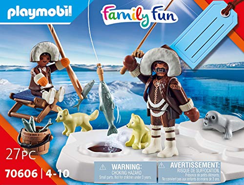 Lieferumfang: 1x PLAYMOBIL Family Fun Geschenkset „Eisangler“, 27-teiliges Spielfiguren-Set unter Einsatz von Belehrung: 1 Eisscholle, 2 Figuren, 24 Zubehörteile, Material: Kunststoff, LxTxH Eisscholle: 14,5x11x1,5 cm, Gewicht: 63 g, 70606