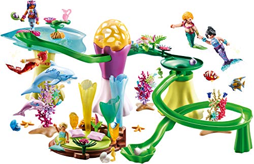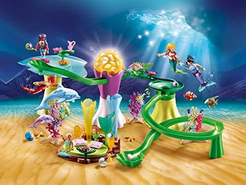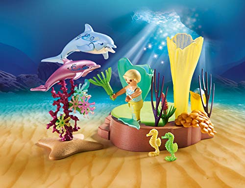 Spielspaß für Mädchen und Jungen: PLAYMOBIL Korallenpavillon mit Leuchtkuppel, Meerjungfrauen & schwimmfähigen Delfinen für detailgetreues Nachspielen