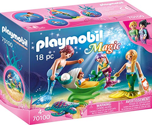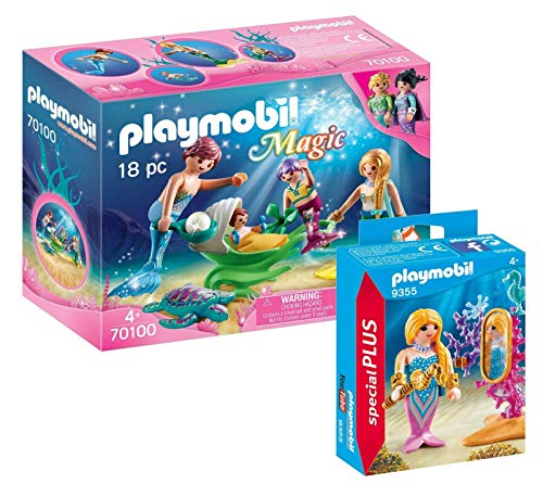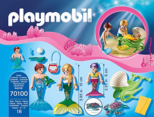 Playmobil Meerjungfrauen zweiteiliges Serie: 70100 Sippe mit Hilfe von Muschelkinderwagen + 9355 Seejungfrau