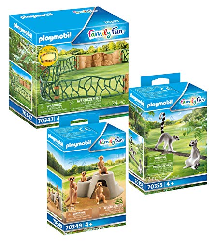 PLAYMOBIL® Set für Zoo 70341 3-teilig: 70347 Erlebnis-Zoogehege + 70349 Erdmännchenkolonie + 70355 Kattas