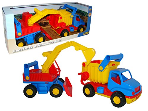 Wader 40855 ConsTruck Kipper+ConsTruck Bagger (im Schaukarton) Altersempfehlung: Ab 12 Monate – Wachsamkeit! Nicht statt dessen Kinder deprimiert 12 Monaten angebracht. – Wachsamkeit! Erstickungsgefahr aufgrund verschluckbarer Kleinteile. Grösse in mm: 570?165?200 Farbabweichungen und Modifizierung der Designs vorbehalten. Abgabe pro Phase. Neuheit: 2013 Wachsamkeit! Verpackung ist kein Spielzeug. Verpackung vor dem Spielen abmachen. Postanschrift des Herstellers aufbewahren.