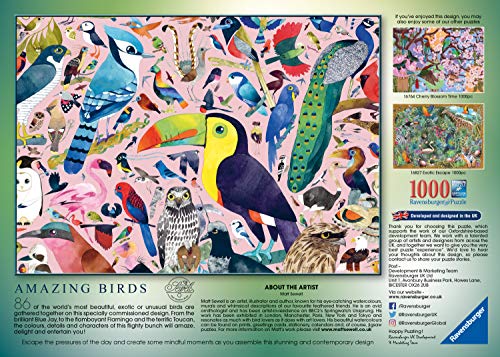86 der schönsten, exotischen oder ungewöhnlichsten Vögel der Welt werden auf diesem speziell auftragten Design zusammengesetzt. Vom brillanten Blue Jay bis zum extravaganten Flamingo und dem tollen Tukan, werden die Farben, Details und Charaktere dieses flighty Bunches verblüffen, begeistern und durchfüttern