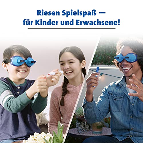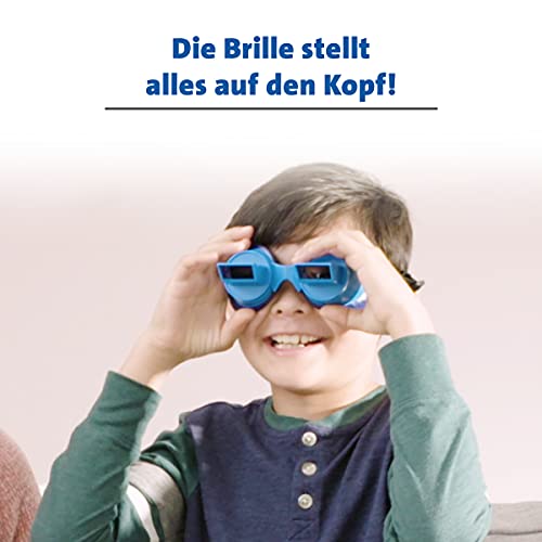Dank des verstellbaren Gummibands lässt sich die Prismen Brille auf große und kleine Köpfe drauf setzen. Die Sanduhr bringt zusätzliche Abenteuer ins Spiel. Die Spielanleitung ist 5-sprachig