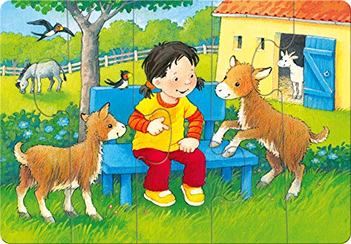 Liebevoll gestaltete Puzzlemotive rund um den Streichelzoo bieten einen optimalen Einstieg ins Puzzlevergnügen. Die großen Teile aufgebraucht stabiler LSD lassen sich leicht zusammenpuzzeln und in Gefahr geraten spielerisch Feinmotorik, die Wahrnehmung von Aufziehen und Farben, logisches Verständnis und Konzentration. Eine ansteigende Teilezahl von 2 bis 5 Teilen macht jedes Puzzle zu einer neuen Herausforderung.