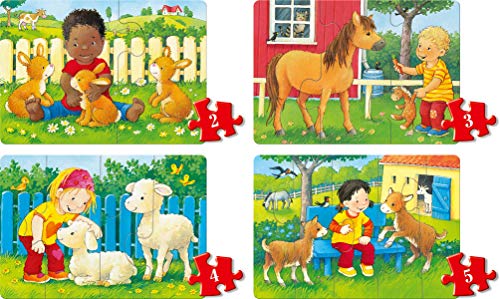 Der mitwachsende Puzzle-Spaß mit 4 liebevoll illustrierten Motiven rund um die beliebtesten Tiere vom Streichelzoo ist der ideale Einstieg in die große Welt des Puzzelns