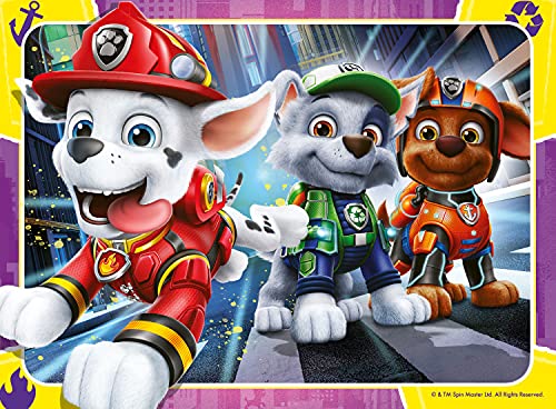 Ihre Lieblings-Paw-Patrol-Figuren: Chase, Marshall, Skye, Rocky, Rubble, Zuma und Auswahlmöglichkeit sind aus in diesem unglaublichen Set mit 12, 16, 20 und 24 Teilen Puzzles, inspiriert von dem brandneuen Paw Patrol: The Movie von Nickelodeon