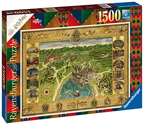 Das Ravensburger 1500 Teile Puzzle Hogwarts Karte ist ein Muss für Harry Potter Fans. Das Motiv zeigt eine Karte rund um die Gegend von Hogwarts und lässt Puzzle-Fans die Lage bekannter Schauplätze qua Hogsmeade oder den verbotenen Wald entdecken