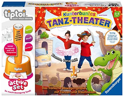 Enthält den tiptoi-Lautsprecher und ein Tanztuch. Mit 15 Bewegungskarten und 3 verschiedenen Musikstilen wird jeder Tanz neu zusammengestellt. 3 Traumreisen laden zur Entspannung ein. tiptoi Stift nicht enthalten, muss abgeschlossen erworben werden