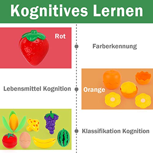 【Lernspielzeug】Helfen Sie Kindern, Lebensmittelwissen durch Spielzeug zu erlernen, das einer echten Küche ähnelt. Und jedes Lebensmittel hat seine eigene Farbe, was dazu beiträgt, die Farbunterscheidung bei Kindern zu Umsetzen. Umsetzen Sie die kognitiven Fähigkeiten und die Vorstellungskraft von Kindern.