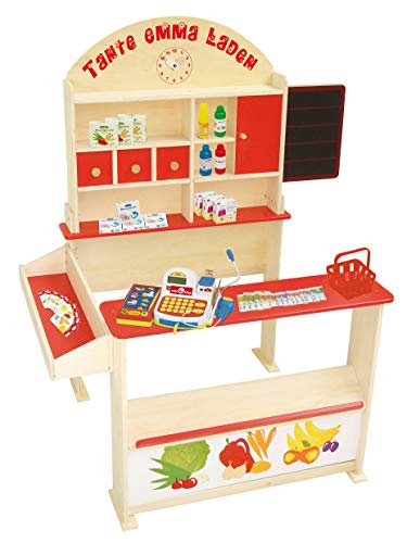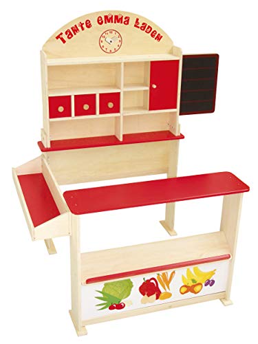 DER ROBA TANTE EMMA LADEN lässt abundant Universum anstatt kreative Rollenspiele. Der via Lebensmittelmotiven bedruckte Einkaufsladen besticht auf Grund eine gute Bearbeitung.