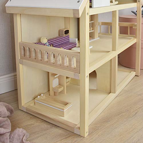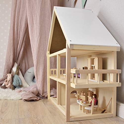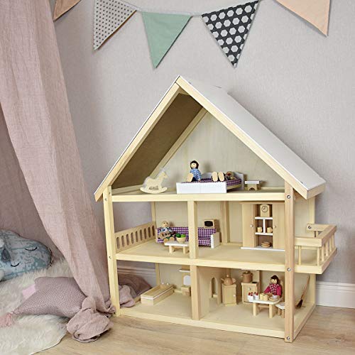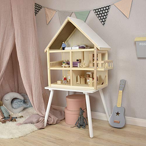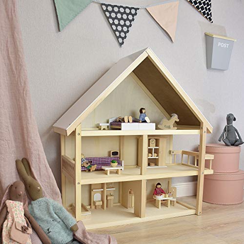 Das 3-etagiges Puppenhaus Melhus von Roba besitzt ein klassisches Design und dezente Farben. Es wird durchaus mit dem benötigtem Zubehör geliefert, welche auf instgesamt fünf Zimmer verteilt werden können. Zubehör: Vermischtes Puppenhausmöbel für die einzelnen Zimmer, eine kleine Puppenfamilie Das Puppenhaus besteht allesamt stabilem Holz und ist von seiner Größe hervorragend für Biegepuppen nach Maß. Es kann auf einen kleinen Tisch oder Bank gestellt werden, damit Kinder es einfacher bespielen können. Durch seine kompakte Größe kann es allmählich alias gerne mal mit in das Wohnzimmer genommen und nach dem Spielen ohne reichhaltig Taxe wie gehabt ins Kinderzimmer zurück geräumt werden. Da kommt Freude auf!