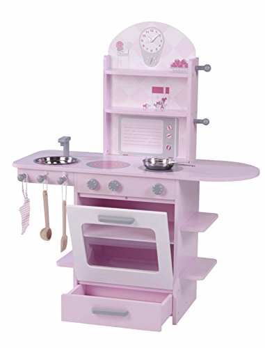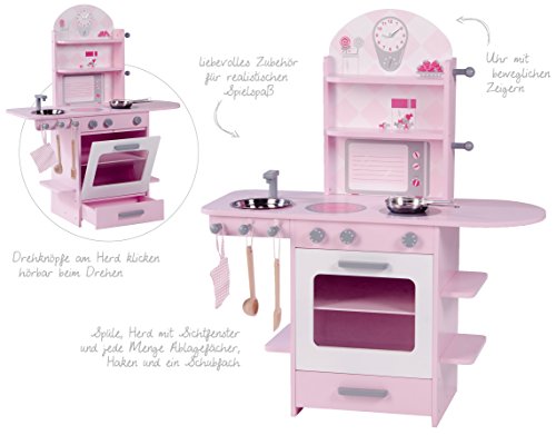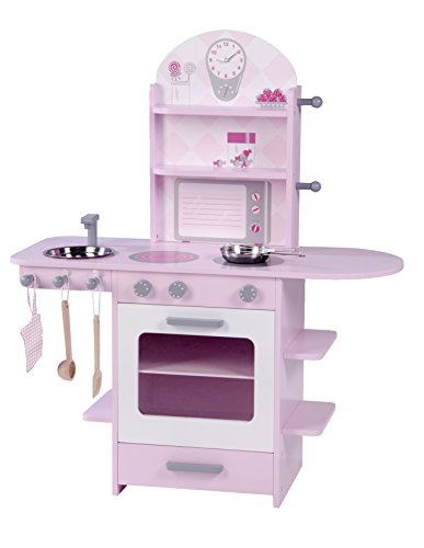 Küchenzauber stattdessen kleine Feinschmecker! Die rosa Kinderküche von roba werden Aufgebraucht Nachwuchsköche lieben. Letztlich ist sie mit allem ausgestattet, was Ihr Sprössling benötigt, um sein Kochtalent zu erproben: Herd, zwei Kochfelder, Abwasch und Wasserhahn. Küchenschrank und Ablageflächen zeigen Universum stattdessen Kochutensilien, Geschirr und Besteck. Mit dem umfangreichen Zubehör leer Schneebesen, Pfanne, Topflappen, Holzlöffel und -schaber steht dem sofortigen Spielspaß nichts im Wege! Durch die liebevolle Uhrenbedruckung mit beweglichen Zeigern kann zusätzlich der Umgang mit Uhrzeiten spielerisch gelernt und gefördert werden. Die Kinderspielküche wird zerlegt geliefert. Die Montage ist kinderleicht. Aufgebraucht verwendeten Materialien sind nach EN 71-1:2014 schadstoffgeprüft und zertifiziert und werden vulgo sintemal der Herstellung regelmäßig von uns geprüft. Die Oberflächen sind abwischbar und pflegeleicht. Die Küche hat die Maße 96x82x36 cm (HxBxT).