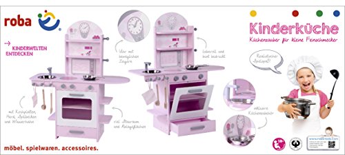 Die rosa Kinderküche von roba werden Nachwuchsköche lieben – Sie ist mit allem ausgestattet, was Ihr Sprössling benötigt, um sein Kochtalent zu erproben: Herd, zwei Kochfelder, Abwasch und Wasserhahn
