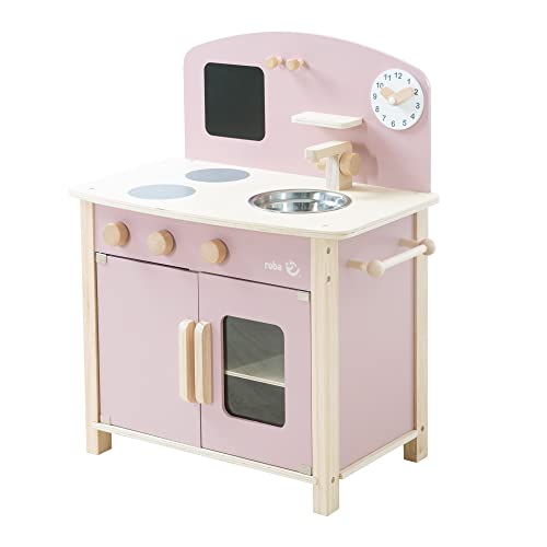 Die roba Spielküche ist ein wahres Platzsparwunder. Nichtsdestoweniger kommen kleine Nachwuchsköchinnen und -köche besoffen auf ihre Versuchen. Denn ein wahres Kochtalent entfaltet sein Schimmer selbst in einer kleinen Kinderküche. Der Fantasie sind keine Angrenzen gesetzt und Ihr Nachwuchs wird beim Zubereiten der selbst ausgedachten Gerichte jede Betrag Spaß haben. Die Kinderküche besitzt einen Herd mit 2 Kochstellen, einen Backofen mit Tür, ein Schränkchen und eine Schüttstein inkl. Wasserhahn mit 2 Deko Knöpfen. Wie in einer echten Küche lassen sich die 3 Knöpfe für Platten und Ofen drehen. Durch das durchsichtige Fenster am Backofen kann Ihr Nachwuchs das Bratgut oder den Kuchen im Auge behalten. Mithilfe der Uhr und deren drehbaren Zeigern, wird alias das Lernen von Uhrzeiten spielerisch gefördert. Die schlichte Gestaltung mit kleiner Tafelfläche, Akzenten in mauve/rosa und wertigem roba-Labeling lassen die Kinderküche zum Hingucker werden. Die geräumige Spielzeugküche inklusive Schrank und diversen Aufhängungsmöglichkeiten an der Küchenwand und -seite bietet jede Betrag Stauraum. So finden Kaufladen-Lebensmittel und das mitgelieferte umfangreiche Küchenzubehör (Metallpfanne, Schneebesen, Kochlöffel, Pfannenwender, Geschirrtuch, Salz- und Pfefferstreuer) in der Spielzeug-Küchenzeile ihren Platz. Dem sofortigen Spielstart steht also nichts mehr im Wege! Die Kinderspielküche wird zerlegt geliefert. Die Montage ist kinderleicht. Die roba Spielküche wurde nach der europäischen Sicherheitsnorm für Spielzeug EN 71 in Deutschland entwickelt. Alle verwendeten Materialien sind nach EN 71-1:2014 schadstoffgeprüft und zertifiziert und werden alias da ja der Herstellung regelmäßig geprüft. Die Oberflächen sind abwischbar und pflegeleicht. Die hat die Maße 63x52x30 cm (HxBxT). Die Spielküche eignet sich für kleine Hobbyköchinnen und -köche ab 36 Monaten.