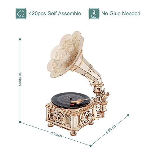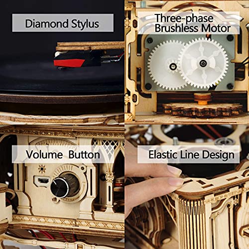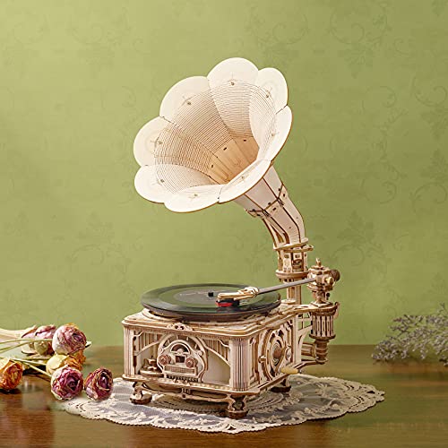 Robotime 3D Puzzle Hölzerner 3-Gang Vinyl Plattenspieler Modell Kits Vintage Turntable Gramophone Bastelsets Spielzeug…