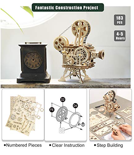 Originelles Design und perfekte Idee – Robotime Designer Es ist mehr als nur ein Modell, es ist ein voll funktionsfähiger Filmprojektor. Hergestellt aus 100% Lindenholz, ist es auf 5 Mikron genau konstruiert, um dieses erstaunliche Modell herzustellen.