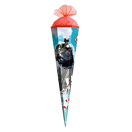 ROTH Geschenk-Schultüte klein Lokomotive 50 cm – 6-eckig Tüllverschluss – Zuckertüte Schulanfang Zug Eisenbahn