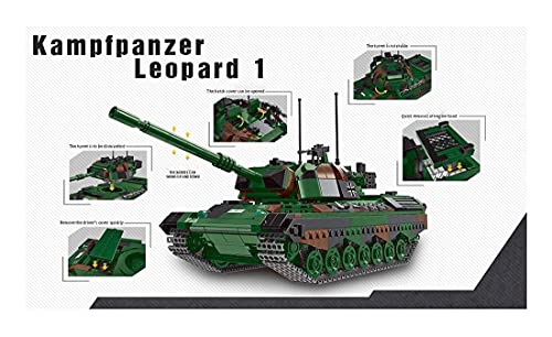 Technics Panzer Modellbausätze, 1145 Teile German Leopard 1 Main Battle Tank WW2 Military Tank Bausatz für Kinder und Erwachsene, Bausteine Kompatibel mit Lego Technic