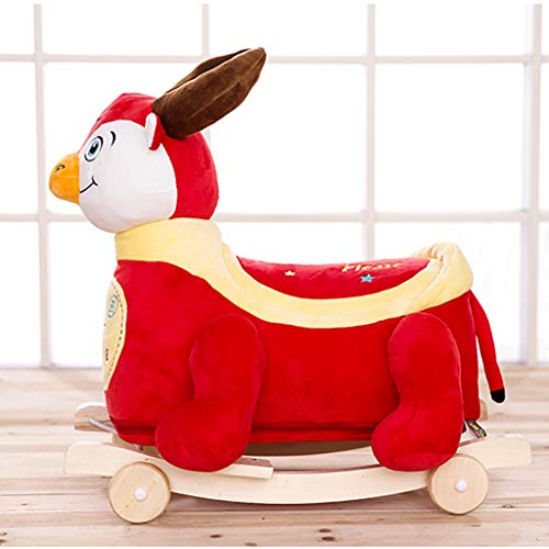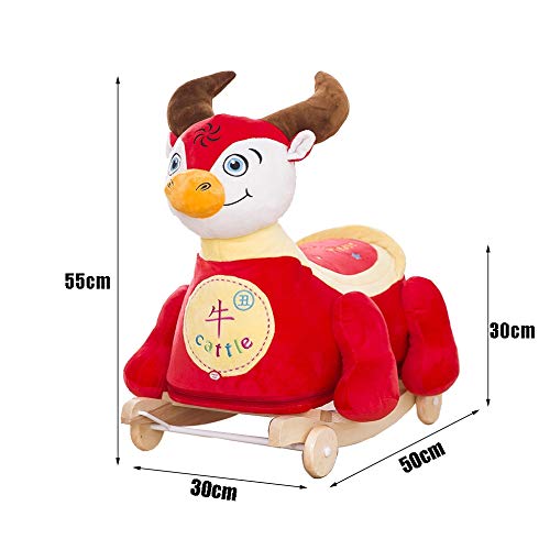 2 In 1 – Plüschschaukelpferd mit Rädern kann Rocker einfach und platzsparend zu einem Kinderwagen ohne Werkzeug umgebaut werden.Räder können auf Strand, Boden, Rasen laufen.Bitte beachten Sie, dass das Design nicht für Oberflächen in der Nähe von Schwimmbädern geeignet ist.
