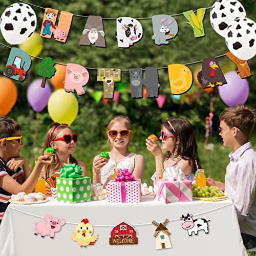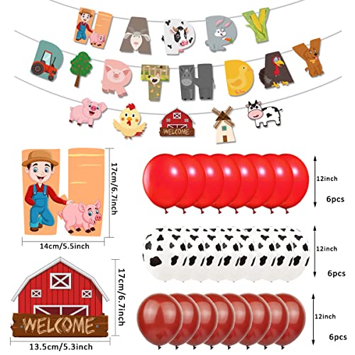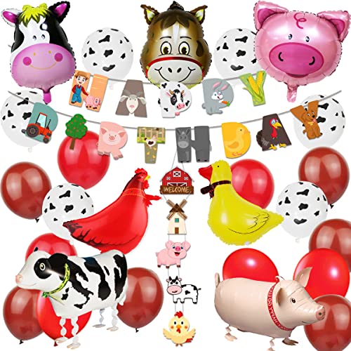 【Bauernhof-Party-Zubehör】 Das Paket enthält 4 Ausschnitt Tierlaufballons (1 Ausschnitt Hahn, 1 Ausschnitt Ente, 1 Ausschnitt Schwein, 1 Ausschnitt Kuh), 24 Ausschnitt 12-Abgabe-Latexballons, 1 Ausschnitt Farm-Happy-Birthday-Banner, 3 Ausschnitt niedliche Tierkopf-Folienballons (1 Kuh, 1 Schwein , 1 Esel). Diese Bauernhaus-Partydekorationen eignen sich für Geburtstagsfeiern zum Thema Bauernhof für Jungen oder Mädchen.