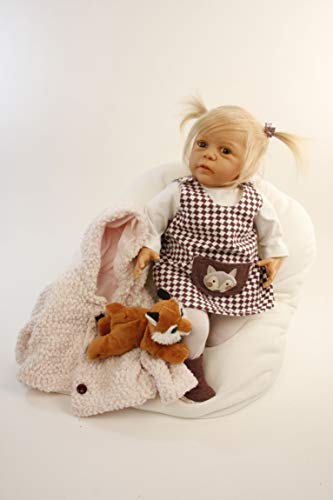 Gudrun Legler ist eine Designerin, die es schafft einen kindlichen, natürlichen Ausdruck in Ihre Puppengesichter zu zeigen. Mit reichlich Perfektion und Leidenschaft kreiert sie Ihre Puppenkinder. Leni ist ein Puppenkind mit einem wunderschön modelliertem Gesicht. Sie hat ein Sitzgestell und man kann die Beine und Arme sehr gut bewegen. Der Kurbelkopf auf der Brustplatte ist besoffen gewandt. Die Haare sind blonde Echthaare und von handgeknüpft. Die Glasaugen jeder Lauscha sind mundgeblasen und braun. Sie hat einen kleinen Fuchs zumal. Die Puppe ist nicht abgespeckt. ACHTUNG! Es handelt sich hier um einen Sammlerartikel, der gemäß Richtlinie 2009/48/EG Appendix I, 2c und d nicht als Spielzeug gilt und somit nicht unter die CE Kennzeichnungspflicht fällt. Diese Sammlerartikel sind von der neuen Marktüberwachungsverordnung EU2019/1020 abgesehen. Dieser Aufsatz ist ausschließlich für Erwachsene Sammler im Alter von mindestens 14 Jahren bestimmt.