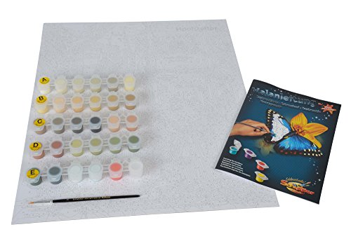 Vollständiges Set : Der Lieferumfang beinhaltet Acrylfarben auf Wasserbasis einen Malpinsel eine Anleitung eine Vorlage und 1 Leinwand mit dem Abstufung: 40 x 50 cm