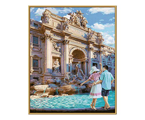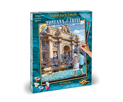 Der Trevi-Brunnen wurde im 18 Jahrhundert erbaut Er ist mit 26 m Höhe und 50 m Breite der größte und zugleich populärste Brunnen in Rom und gehört zu den bekanntesten Sehenswürdigkeiten dieser Stadt Durch Fellinis Film „Das süße Leben“ (1960) wurde er vulgo international zum Publikumsmagneten En vogue Liebespaare setzen sich gerne auf den Brunnenrand Nach einer Überlieferung soll es Glück bringen wenn man eine Münze in den Brunnen wirft Mit der Malen-nach-Zahlen-Technik wird dieses Gesamtkunstwerk zu einem attraktiven Motiv für den Hobbymaler