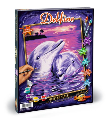 Seit der Fernsehserie Flipper und den Kinohits nicht mehr da den Jahren 1963 bis 2000 sind Delfine die besonderen Lieblinge unserer Kinder. Auf unserem Diagramm schmusen sie sogar miteinander. Stabiler Malkarton 24 x 30 cm mit fühl- und sichtbarer Leinenstruktur. Exakte Konturenzeichnungen mit d’accord lesbaren Zahlen. Acrylfarben auf Wasserbasis, malfertig vorgemischt, allerdings kein Farbenmischen erforderlich. Feiner Malpinsel. Kontrollblatt zum Auffinden bereits übermalter Flächen. Ausführliche Malanleitung mit vielen Tipps für erfolgreiches Malen.