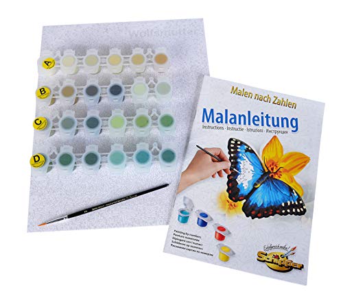 Vollständiges Set – Der Lieferumfang beinhaltet Acrylfarben auf Wasserbasis, einen Malpinsel, eine Anleitung, eine Vorlage und eine Malvorlage mit dem Grad 24 x 30 cm