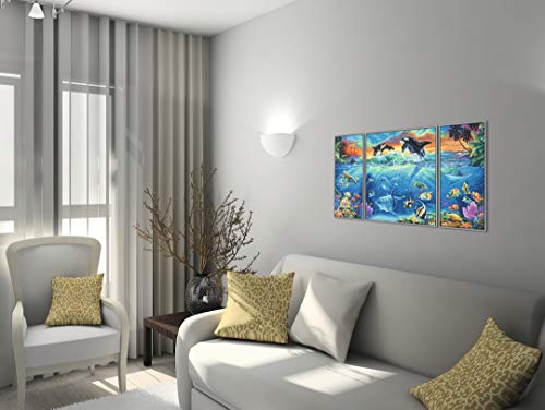 Vollständiges Set : Der Lieferumfang beinhaltet Acrylfarben auf Wasserbasis, einen Malpinsel, eine Anleitung, eine Vorlage und 3 Leinwände: 1 Mittelbild: 50 x 40 cm, 2 Seitenbilder: 50 x 20 cm