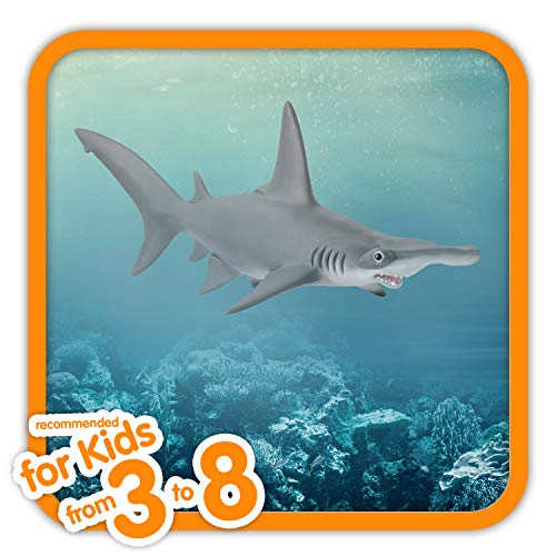 Hammerhaie ernähren sich von Sardinen, Heringen und Makrelen. Früher glaubte man, die Tiere würden ihre Beute Durch ihrem Kopf abgeschafft. Heute weiß man, dass die ungewöhnliche Kopfform der besseren Wahrnehmung dient. Die Augen absitzen denn beim Hammerhai von Schleich Wild Life alternativ und rechts außen am Kopf und ermöglichen dem Raubfisch einen 360-Nuance-Ausblick. Durch der Schnauze nimmt er die elektromagnetischen Signale seiner Beutetiere wahr
