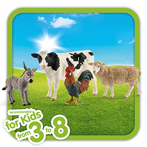 Set enthält 4 verschiedene Bauernhoftiere (Kuh Schwarzbunt, Schaf, Hahn, Esel Fohlen)