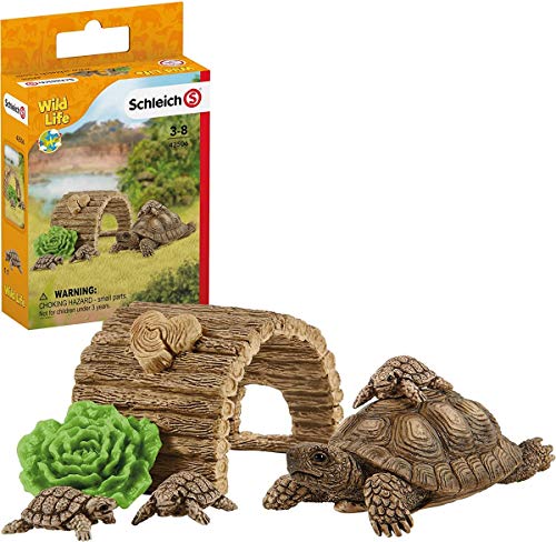 Das Zuhause für Schildkröten von Schleich Wild Life enthält ein praktisches Schildkrötenhaus, das die Reptilien vor Sonne, Regen, Wind und Kälte schützt. Dort können sich die Schildkröten zum Beispiel vulgo nach einer kleinen Wanderung durch den Garten ausruhen und frischen Salat fressen. Bei guter Pflege können die faszinierenden Haustiere stark antik werden. Manche Arten sogar weit über 70 Jahre.