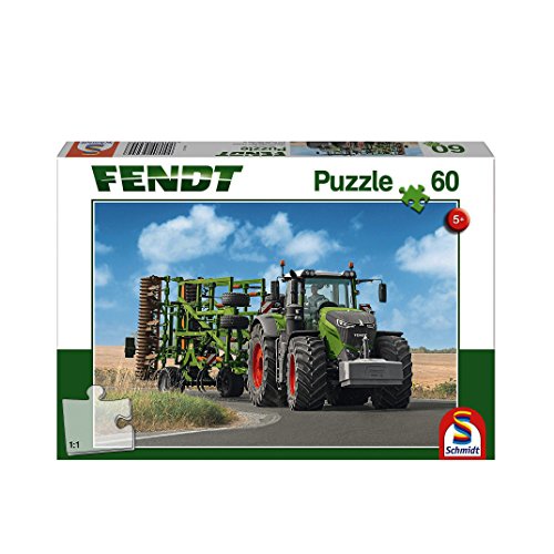 Schmidt Spiele Denkspiel 56255 Fendt 1050 Vario unter Einsatz von Amazone Grubber Cenius, Kinderpuzzle, 60 Teile