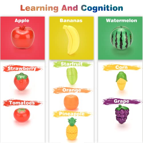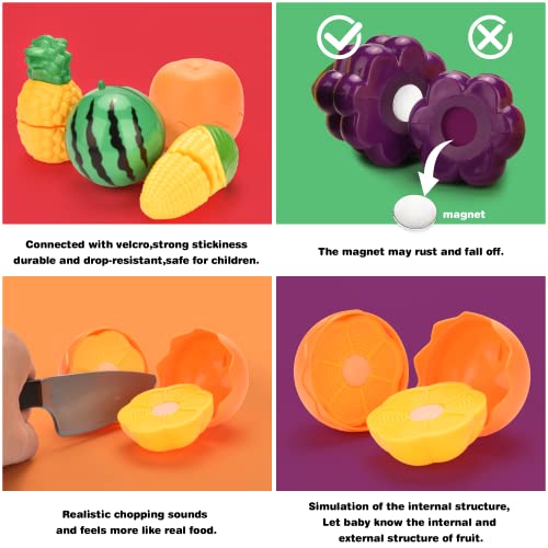 【Realistische Details von Obst und Gemüse】 Dieses farbenfrohe Obst- und Gemüsespielzeug hat eine klare Textur, ist aus Nylon befestigt, geschnitten und geschält und macht beim Kürzen ein „Schnitt“-Geräusch Der Nylonkleber hat eine starke Klebekraft, ist fest und l sst sich nicht leicht losschnallen. Es kann noch einmal gespielt werden, gibt Kindern endlosen Spaß.