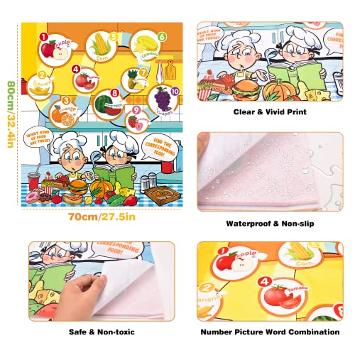 【Bunte Farbmatte】 Der Teppich ist ein Vliesstoff, der nicht leicht zu falten und wasserdicht ist. 70 x 80 cm, Teppich mit Obstmotiven, Worten, Zahlen, Innendetails der Muster, Eltern im Spiel können das Sprössling helfen, den Vokabular zu bauen und Obst und Gemüse zu identifizieren, wenn sie mit dem Sprössling spielen. Es ist ein gutes Unterhaltung und Lernwerkzeug, das Kinder leicht im Spiel lernen können.