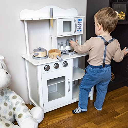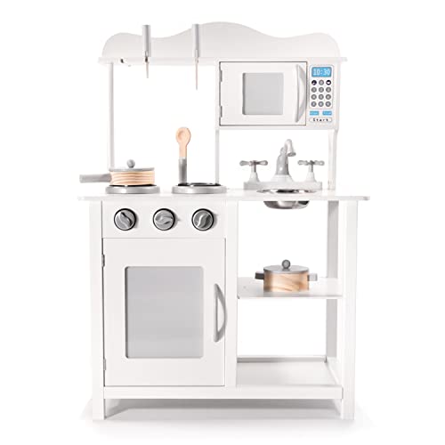 Selonis Kinderküche Aus Holz Spielküche Pretend-Spielset Für Kinder Montessori, Weiß