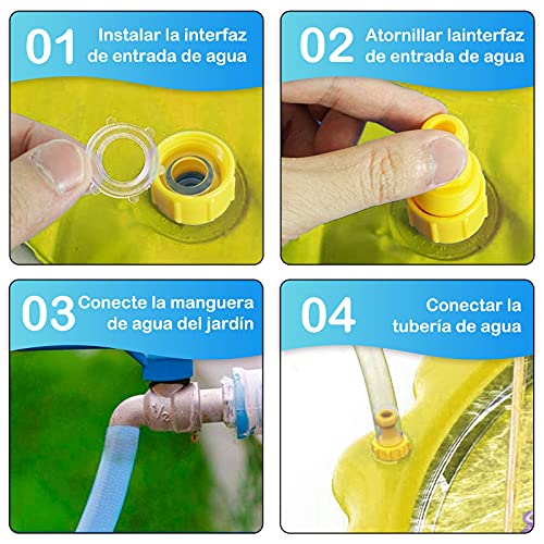 【Einfach zu installieren】 Das Sprinkler-Pad ist sehr einfach zu installieren und zu verwenden. Installieren Sie die Dichtung, ziehen Sie den Stecker an; schließen Sie das Wasserrohr an und füllen Sie das Wasser. Verbinden Sie es mit einem Gartenschlauch und stellen Sie den Wasserdruck ein, um die Höhe der Wasserströme zu erhöhen oder zu verringern.